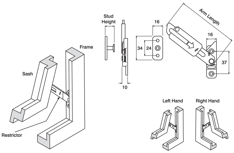 Note: To ensure correct operation of the restrictor, it is important that the correct stud plate height is used to suit the cavity between the sash and the frame.